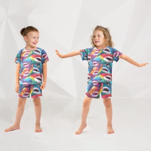ALAZA Rainbow Color Sharks Pajama Set Short Sleeve Sleepwear Soft Lounge Nightwear 3