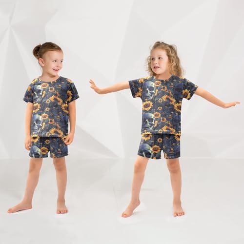 ALAZA Skull and Sunflowers Pajama Set Short Sleeve Sleepwear Soft Lounge Nightwear 2