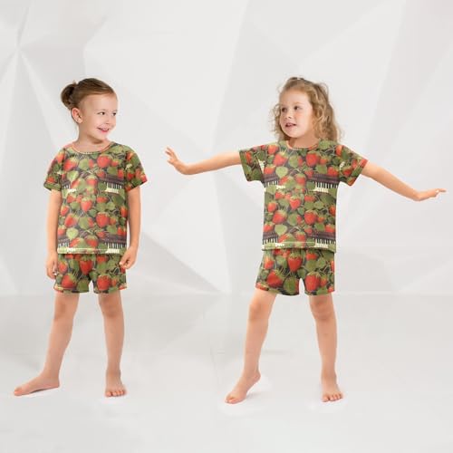 ALAZA Vintage Strawberries Music Theme Pajama Set Short Sleeve Sleepwear Soft Lounge Nightwear 2