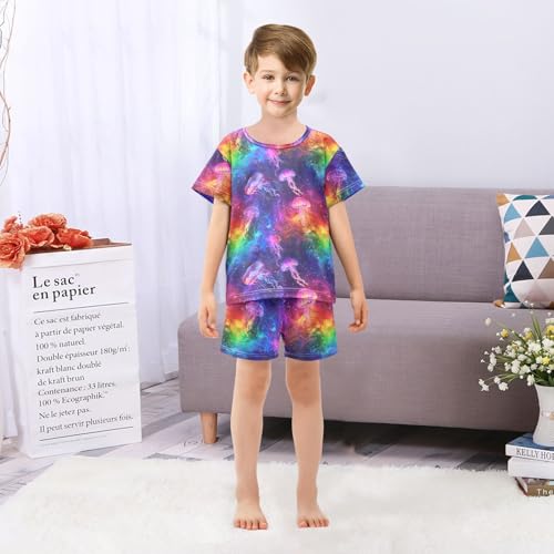 ALAZA Rainbow Jellyfish in The Galaxy Pajama Set Short Sleeve Sleepwear Soft Lounge Nightwear 3