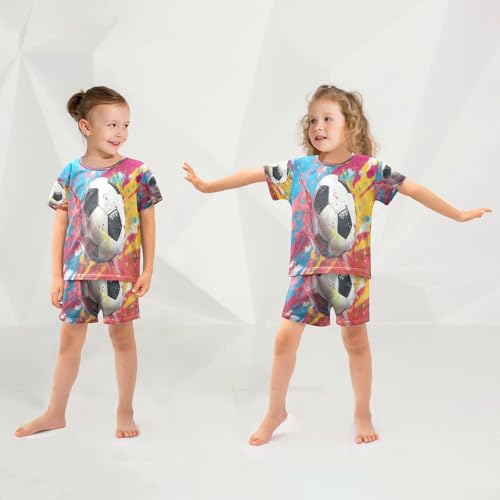 senya Short Sleeve Pajamas Sets Summer Cotton Sleepwear Watercolor Soccer 2