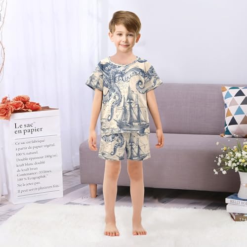 ALAZA Vintage Nautical Octopus Map Watercolor Pajamas Set Short Sleeve Cotton Sleepwear Summer Pjs 2 Piece 5-14Y 6