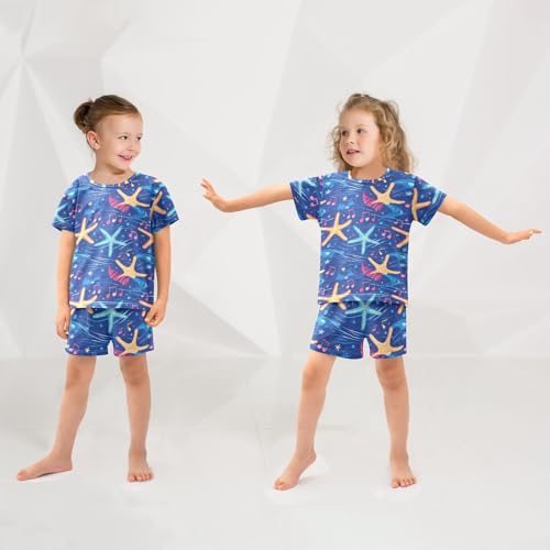 ALAZA Starfishes Musical Note Pajama Set Short Sleeve Sleepwear Soft Lounge Nightwear 3