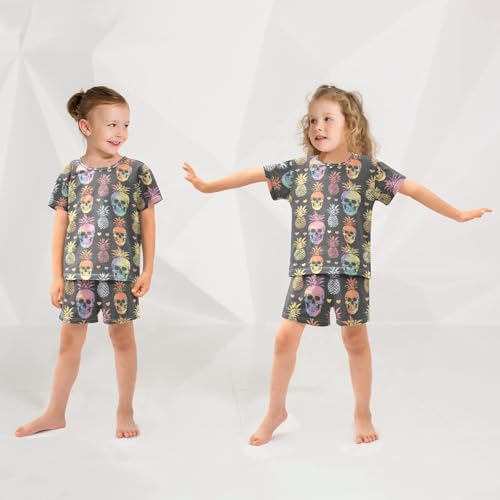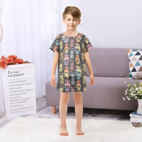 ALAZA Rainbow Skulls Hearts Pineapple Pajama Set Short Sleeve Sleepwear Soft Lounge Nightwear 1