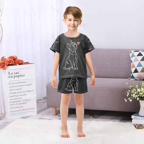 ALAZA Cute Bulldog Black Heart Pajamas Set Short Sleeve Cotton Sleepwear Summer Pjs 2 Piece 5-14Y 6