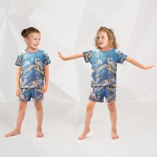 ALAZA Turtle Jellyfish Coral Pajama Set Short Sleeve Sleepwear Soft Lounge Nightwear 3