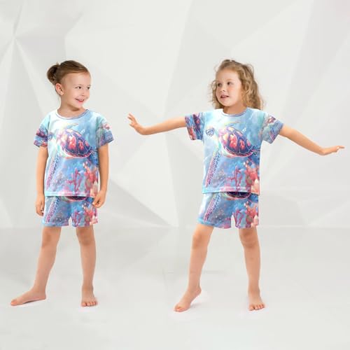 senya Short Sleeve Pajamas Sets Summer Cotton Sleepwear Marine Turtle Coral 1