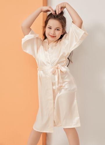 QXQTER Girls Silky Satin Robe Kids Kimono Robes for Wedding Bridal Birthday Spa Party Gifts Getting Ready Bathrobe 5