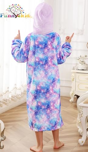 Funnycokid Girls Robe Kids Hooded Bathrobe Zip Fleece Fuzzy Soft Pajamas Plush Sleepwear 4-14 Years 4