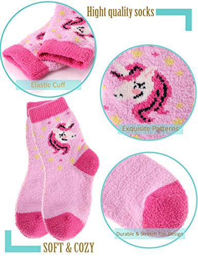 • FUZZY AND SOFT : The girls fuzzy socks for kids is blend of high quality materials, super soft coral velvet inner design, It's very soft, comfortable and breathable, no itching issue. It's a great gift and also a perfect socks for girls or boys.