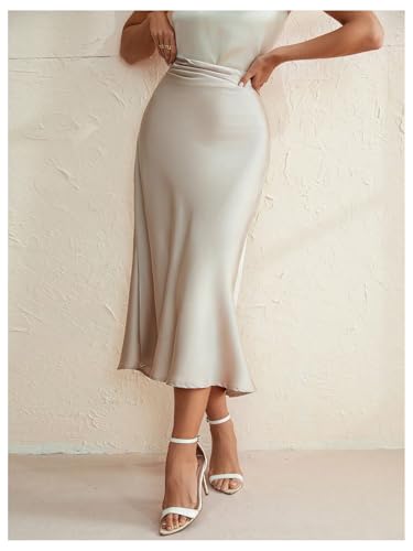More information about WDIRARA Women's Satin Skirt High Waisted Ruched Fishtail Long Skirts