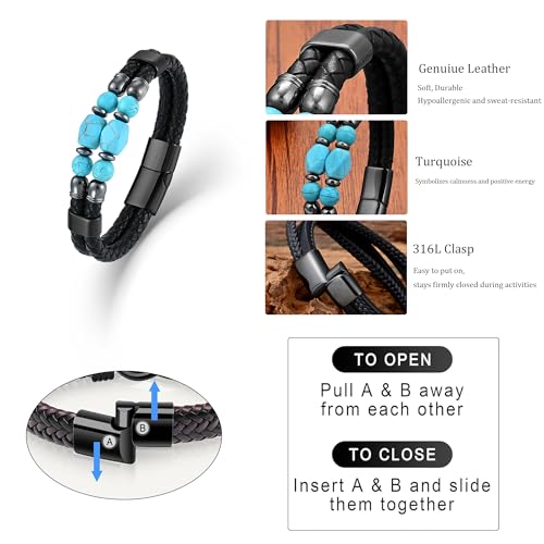 • An ideal leather turquoise bracelet for Father,Husband,Brother,Son,Grandson on Father's Day/Halloween/Christmas/Birthday/Valentine's Day/Anniversary/Thanksgiving/Retirement/Graduation, etc