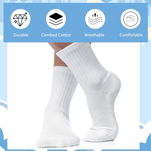 Lusofie Girls Crew Socks 8-10 Years Old 3 Pairs White Kids Socks For Boys Girls White Crew Socks Unisex Kids 8-10 Years Old Youth Boys Girls Soft 9-12 Years Kids Crew Socks 6