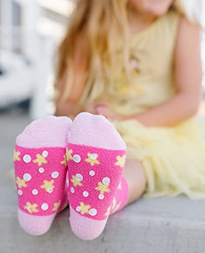 Jefferies Socks Girls Fuzzy Fashion Rainbow Pattern Non-Skid Slipper Socks 4 Pack 6