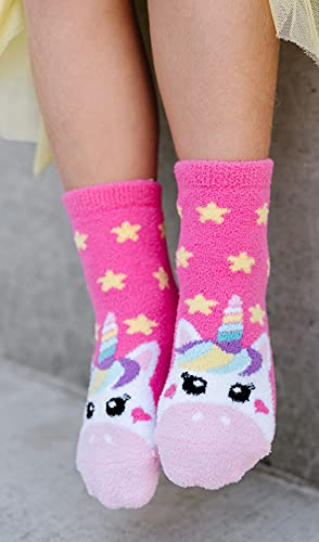 Jefferies Socks Girls Fuzzy Fashion Rainbow Pattern Non-Skid Slipper Socks 4 Pack 5