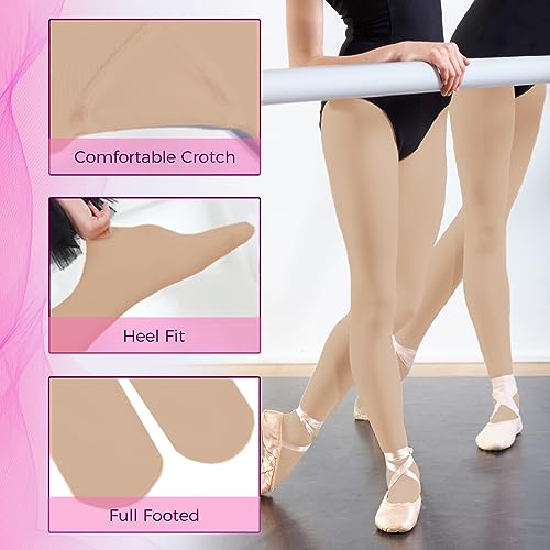 Buauty 2 Pairs Girl's Ballet Dance Tights,Convertible Transition Toddler Pantyhose Kids Soft School Footed Legging Stockings 4