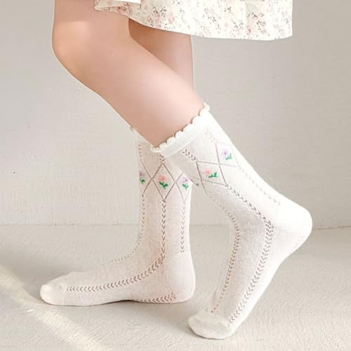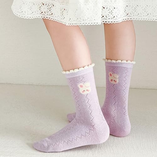 HOT ! Girls Cotton Thin Mesh Crew Socks, Kids Floral Flower Cute Summer Socks, 5 Pairs, 3~12Years