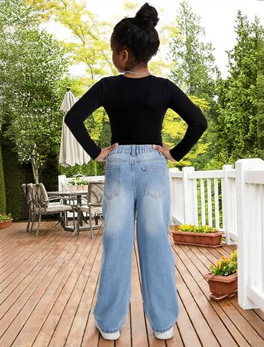 Jeans for Girls Baggy Wide Leg Cute Bow High Elastic Waisted Denim Pants Y2K Boyfriend Skater Streetwear 7-14Y 6