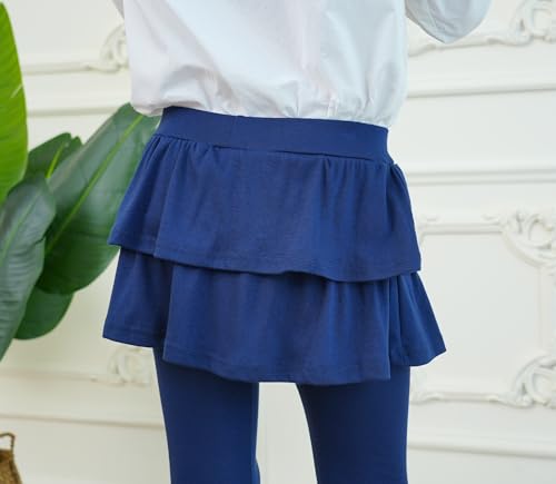 Girls School Uniform Pants Kids Stretchy Tights Soft Tutu Leggings with Ruffle Skirt (US, Age, 7 Years, 8 Years, Navy) 2