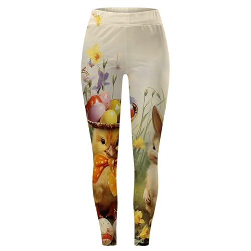 HOT ! Easter Day Rabbit Carrot Eggs Print Yoga Pants High Waisted Leggings Tummy Control Soft Gym Fitness Girl (e-Beige, XXL)