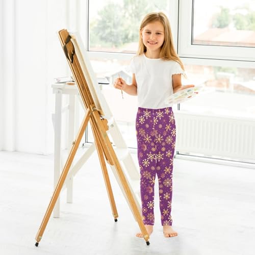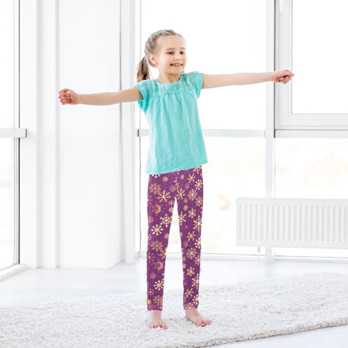 Girls' Athletic Leggings Ankle Length Yoga Dance Pants Kids Teen 4T Pink Line Snowflakes 6