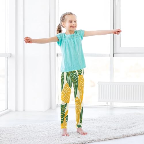 Toddler Girls Leggings Printed Yoga Pants Leggings Green Yellow Leaf for Kids 7