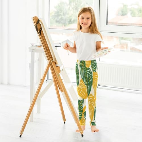 Toddler Girls Leggings Printed Yoga Pants Leggings Green Yellow Leaf for Kids 4