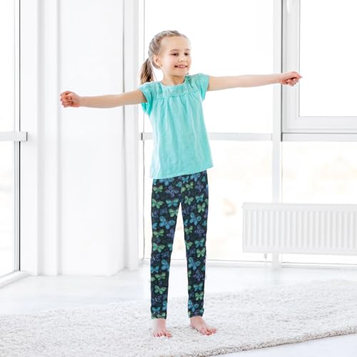 Green Blue Butterfly Girls Leggings Kids Yoga Pants Athletic Tights Pants 4-10 Years 6