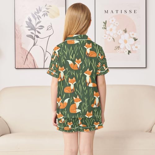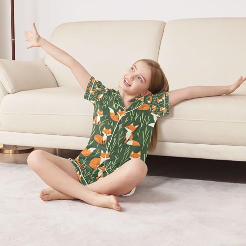 senya Cartoon Foxes and Grass Satin Summer Pajama Sets Silk Short Sleeve Button Down Sleepwear 5