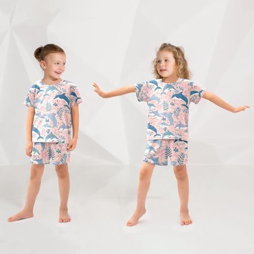 ALAZA Dolphin Leaf Fish Pajamas Short Sleeve 2 Piece Sleepwear Top and Bottom Pajama Set Unisex 6