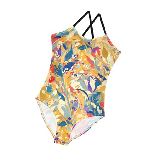 KLL Vintage Floral Pattern Modern Oil Painting Toddler Girl 1 Piece Swim Suit Beach Swimwear Adjustable Shoulder Strap Cute 1