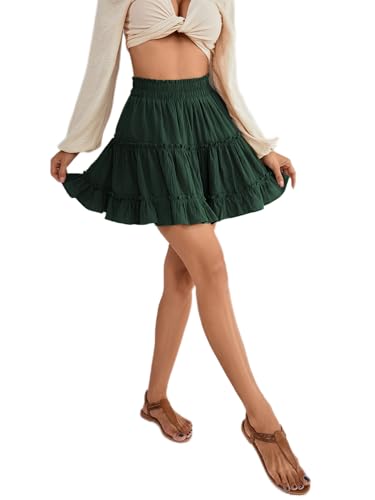 • Solid color, smock elastic waist, pleated, layer ruffle hem, plain flowy short skirt for women and girls.