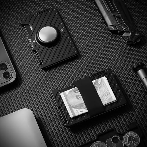 HOT ! Mens Wallet with Airtag Holder(Not Included Air Tag), Slim Rfid Blocking Metal Wallets with Money Strap, Minimalist Front Pocket Aluminum Card Holder, Black, LKA-01