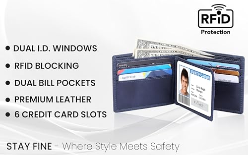 HOT ! The Antiq Leather Wallet for men with RFID Blocking, Gift for Him, Bifold Wallets with 9 Credit Cards 1 ID Window, Wallet for Men, Men's Purse, Currency Organiser (Single ID Wallet, Blue)