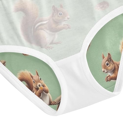 Cute Brown Squirrels Green Little Girl Panties Toddlers Underwear Floral Cotton Print Kids Undies Briefs 2t 5