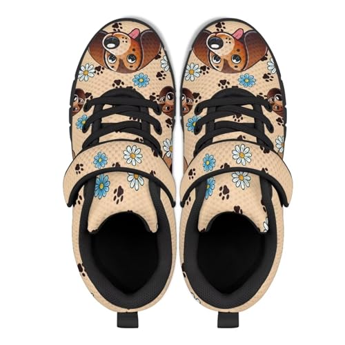 Little Kid Boys Girls Lightweight Breathable Sneakers Strap Athletic Tennis Shoes for Running Walking Cute Dachshund Daisy Pattern 6