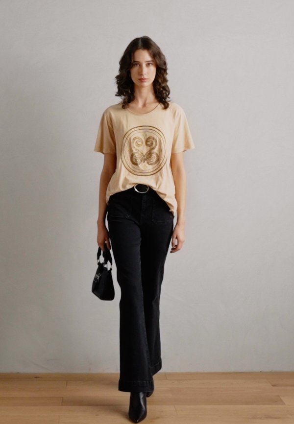 EMBROIDERY TEE - Print T-shirt - sesame 1