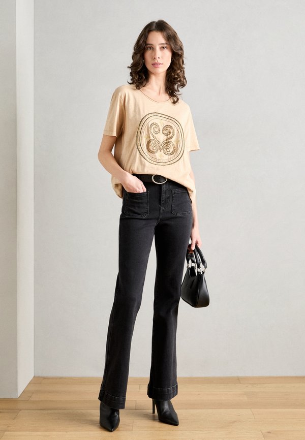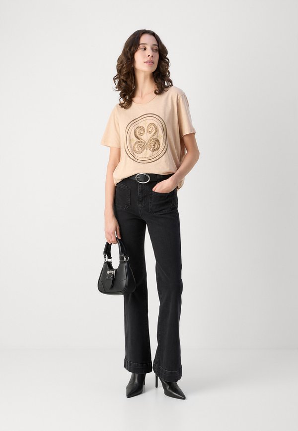 EMBROIDERY TEE - Print T-shirt - sesame 7