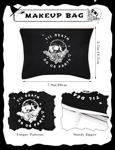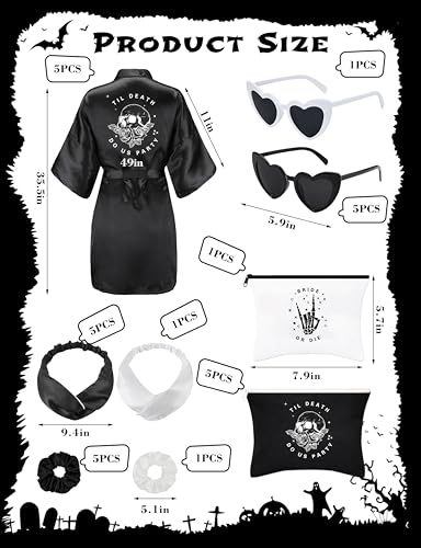 • Unleash the ultimate bride or die bachelorette party energy with this premium bridesmaid robes set of 6. Featuring 1 chic white Bride or Die robe, 5 sleek black gothic robe options, and matching heart sunglasses, skull robe-printed makeup bags, scrunchies, and headbands—this kit brings your til death do us party bachelorette theme to life with fierce unity and flair