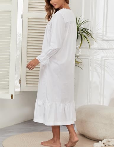 100% Cotton Nightgowns For Women Victorian Night Gown Long Sleeve House Dress With Pockets S-3XL 5