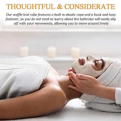 • Adjustable Closure Design: our waffle knit robe features a built in elastic rope and a hook and loop fastener, so you do not need to worry about the bathrobe will easily slip off with your movements, allowing you to move around freely