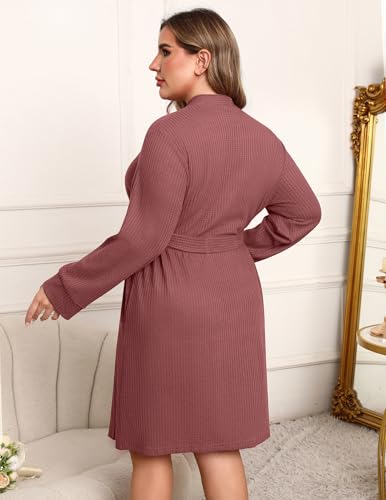 Ekouaer Women's Plus Size Robe Waffle Knit Bathrobe Short Lightweight Kimono Robes with Pockets Maternity Robe 1x-5x 4
