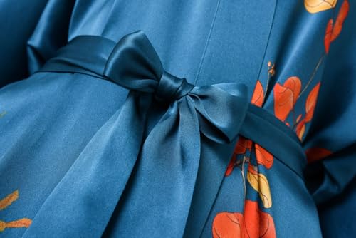 Women's Silk Kimono Robe Long Bathrobe Nightgown 100% Mulberry Silk for Women - Classic Floral Pattern 7