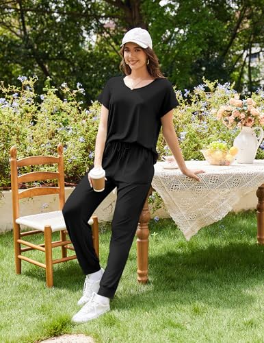 Ekouaer Pajama Sets for Women 2 Piece Lounge Sets Short Sleeve Pullover Top and Jogger Pants Pjs Sleepwear Tracksuit S-XXL 2