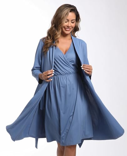 HOT ! QTECLOR Mommy Robe Set for Maternity with Matching Swaddle Blanket, Delivery Labor Gown Robe for Hospital Women Dress