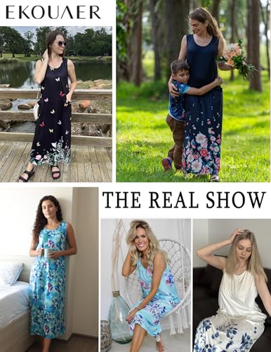 HOT ! Ekouaer Nightgowns for Women Sleeveless Sleepshirt Long Print House Dress Tank Nightshirt Maxi Casual Dress with Pockets
