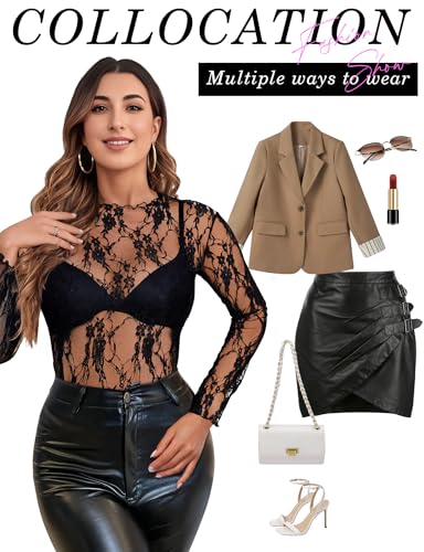 • Elegant and Sexy Design: This mesh bodysuit for women features a turtleneck and see through mock neck for a bold yet sophisticated look The black lace bodysuit adds a touch of elegance perfect for nights out or layering