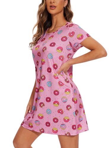 • High Quality Materials: The short sleeve nightgown is made of 95% Polyester and 5% Spandex. The fabric is ultra soft and comfy, lightweight, breathable, skin-friendly and moisture wicking, help you get a good night sleep.
