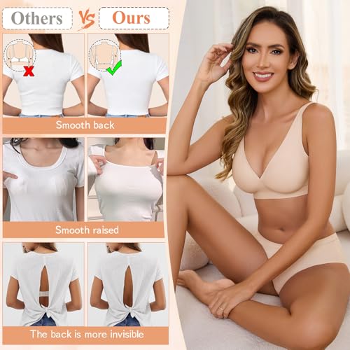 Yusongirl Deep V Low Back Bra for Women Wirefree Seamless Bra Multiway Convertible Strap Padded Bra Comfort Lifting Bra 5