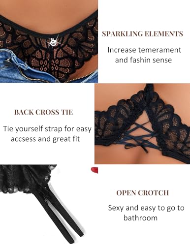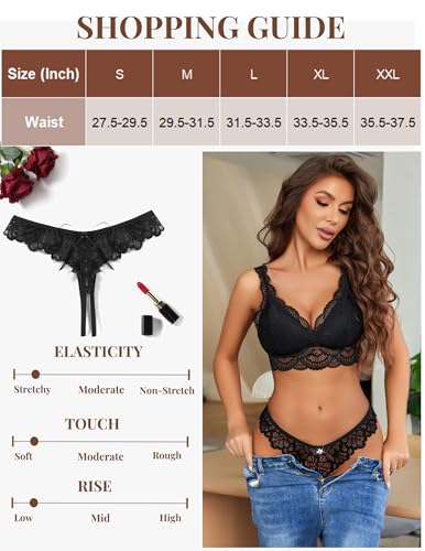 • Lace thongs with Unique crotch design for intimate moments, spicing up the love time between you and your lover. Perfect for special occasions, Wedding Night, Honeymoon, Valentine's Day, Anniversary, Lingerie Party, Bedroom or Every Special night